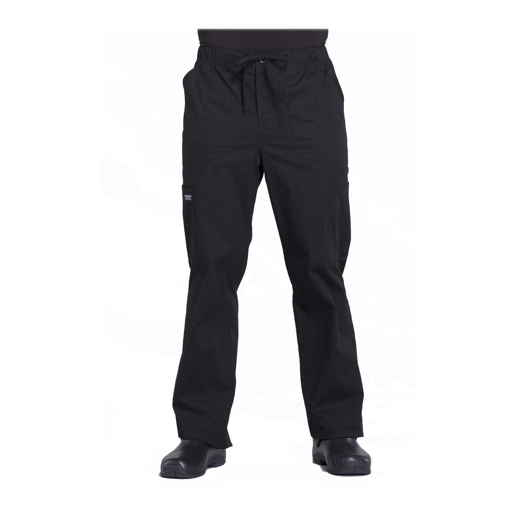 Cherokee Workwear Pant WW Professionals Mens Men's Tapered Leg Drawstring Cargo Pant Black ww190