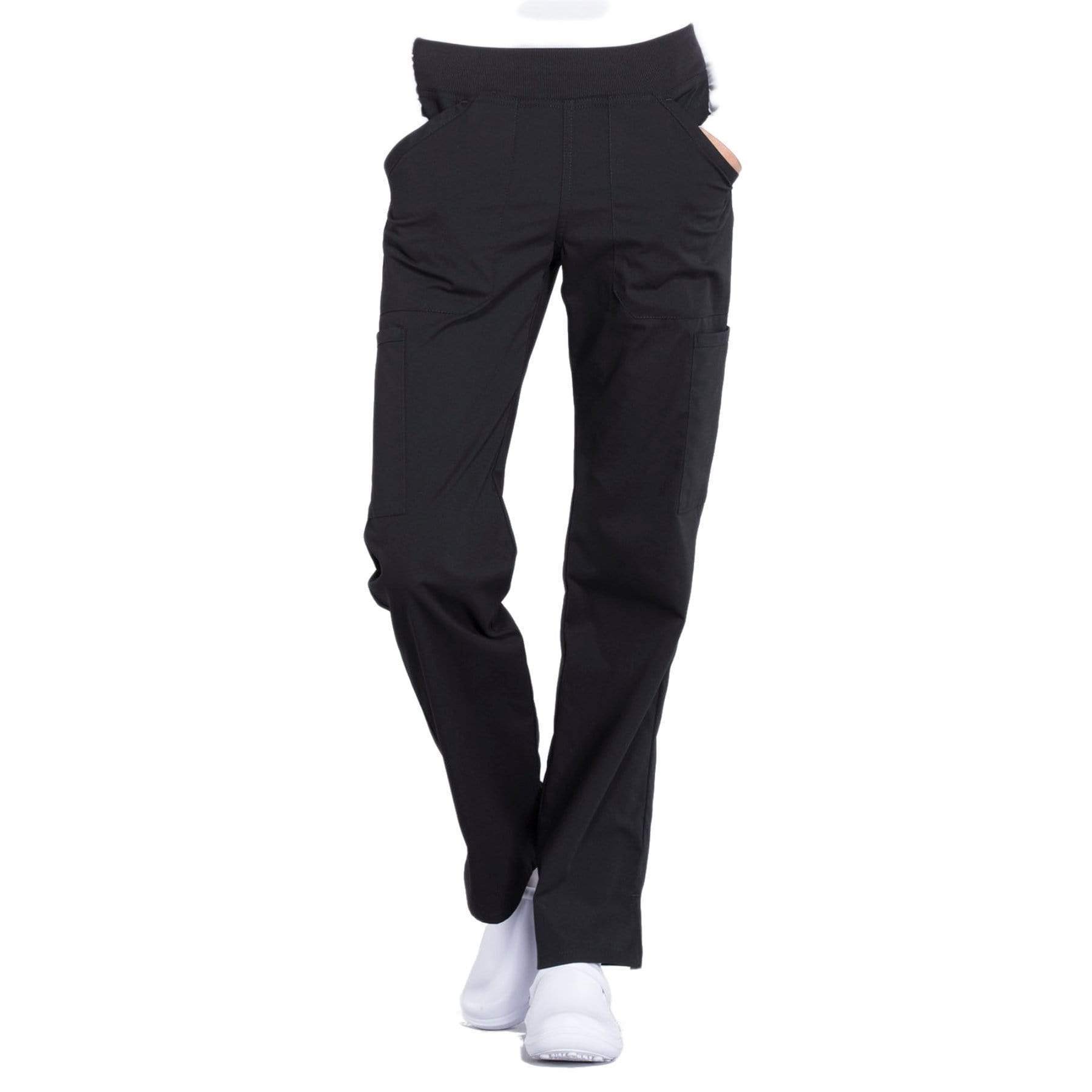 Cherokee Workwear Professionals WW170 Scrubs Pants Women's Mid Rise Straight Leg Pull-on Cargo Black