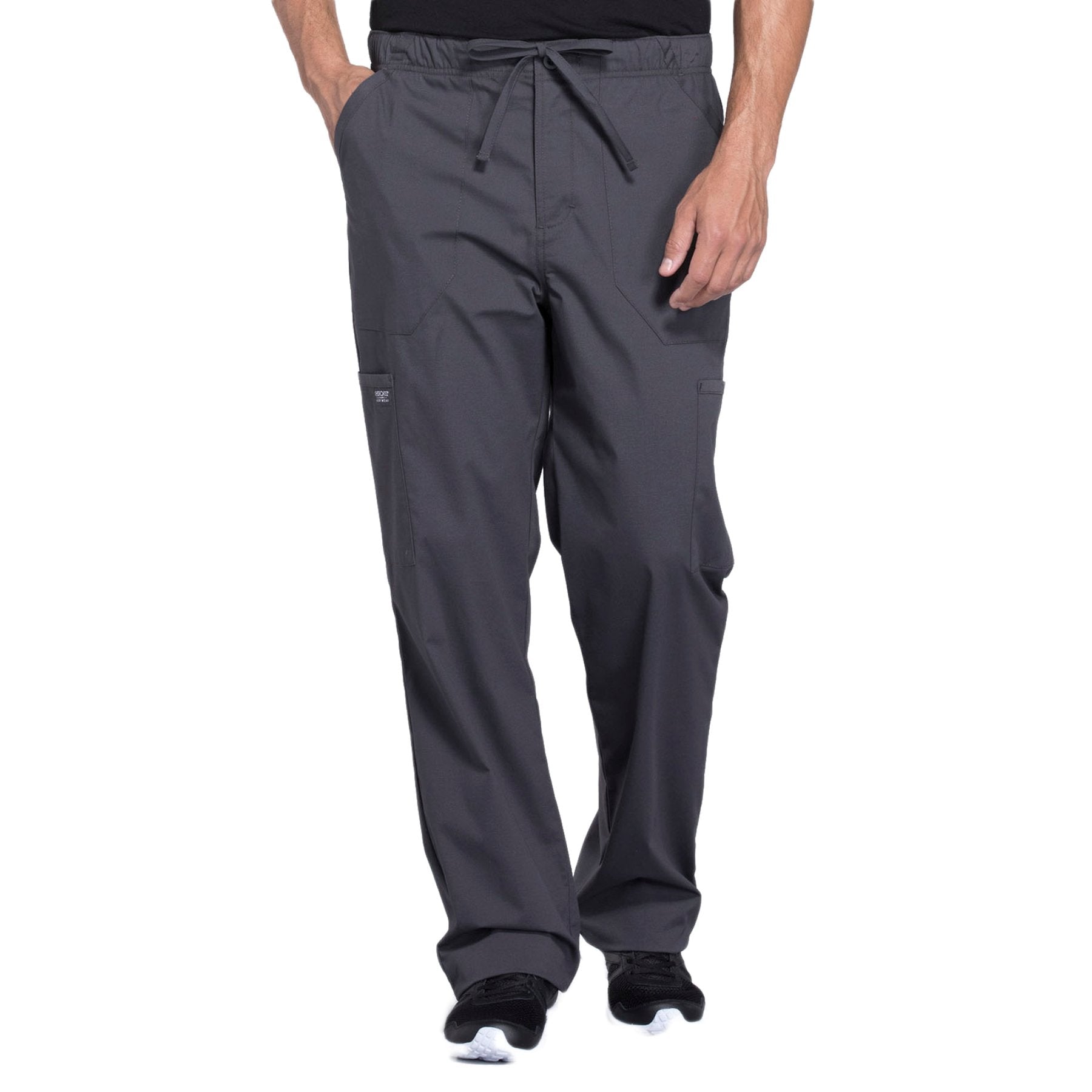 Cherokee Workwear Professionals WW190 Scrubs Pants Men's Tapered Leg Drawstring Cargo Pewter