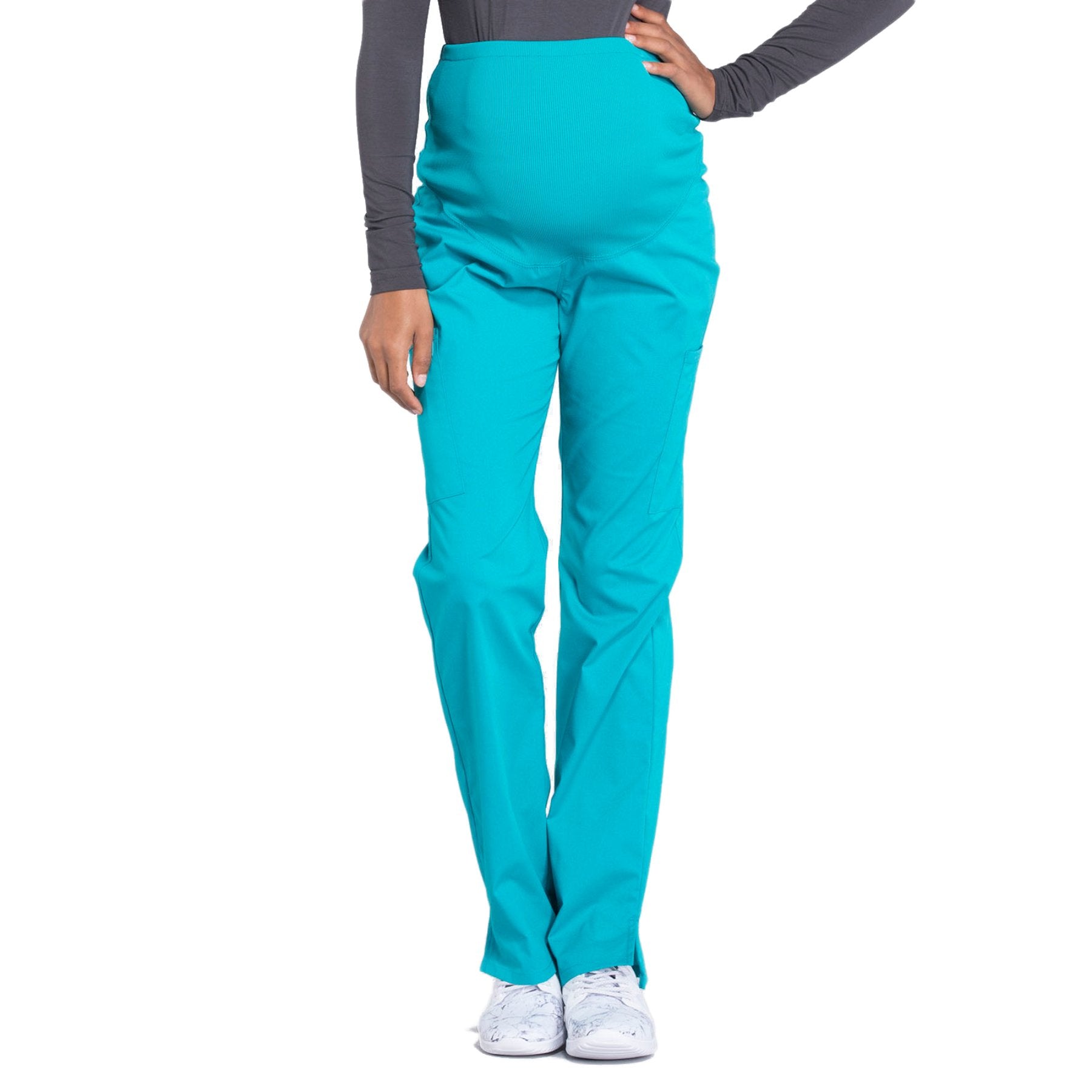Cherokee Workwear Professionals WW220 Scrubs Pants Maternity Straight Leg Teal Blue